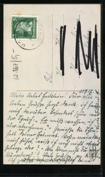 gelaufen 1927, Eckknick oben li., guter Zustand