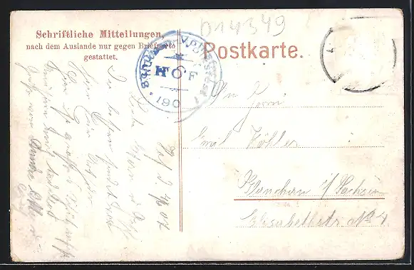 alte Ansichtskarte, gelaufen, Briefmarke entfernt, Stempelspur, guter Zustand