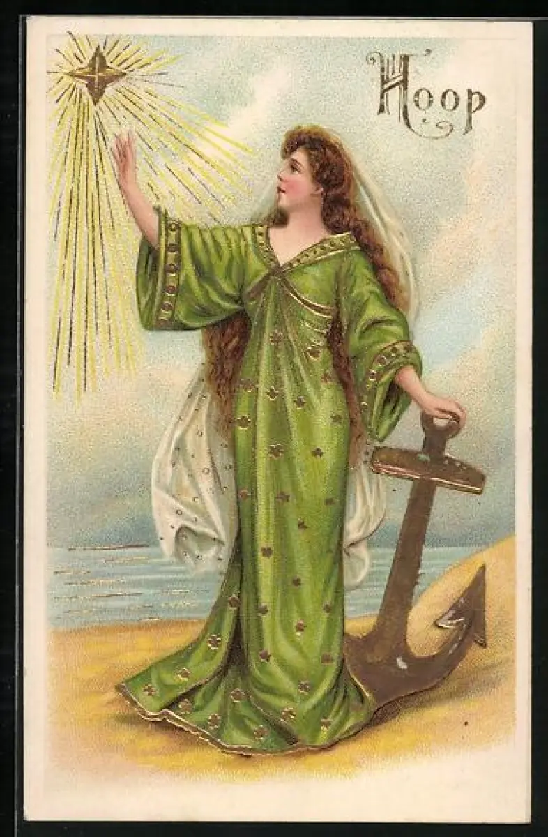 AK Hoffnung, Frau mit Anker greift nach den Sternen