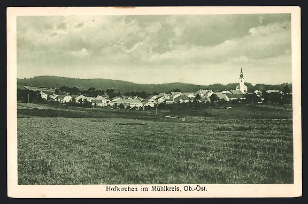 AK Hofkirchen im Mühlkreis, Ortspanorama mit Kirche