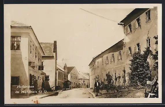 AK Hofkirchen im Mühlkreis, Strassenpartie mit Anlage, Benzinverkauf u. Geschäften