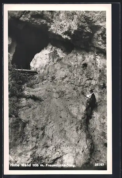 AK Hohe Wand mit Frauenlucke-Steig und Bergsteiger