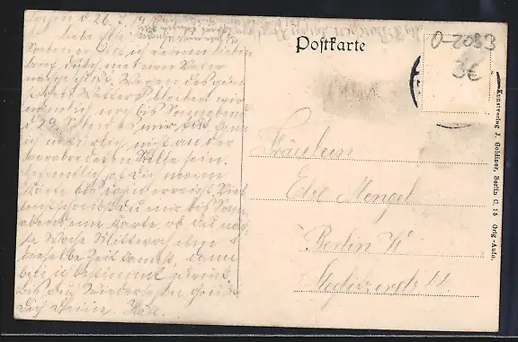 alte Ansichtskarte, gelaufen 1910, Briefmarke entfernt, rückseitig Oberflächenschaden, guter Zustand