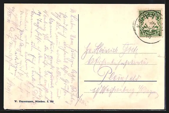 alte Ansichtskarte, gelaufen 1910, guter Zustand