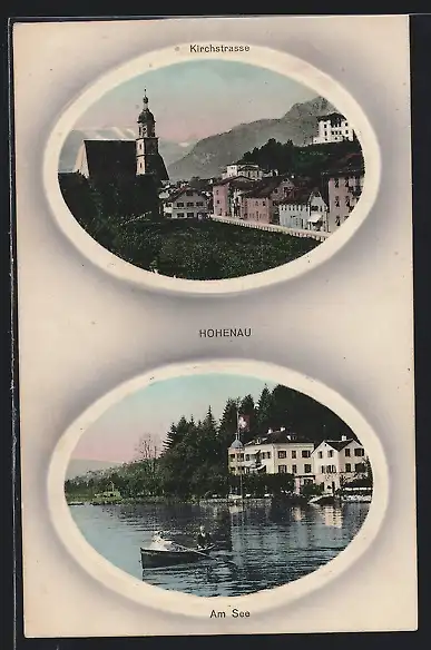 AK Hohenau an der March, Kirchstrasse mit Kirche, Am See