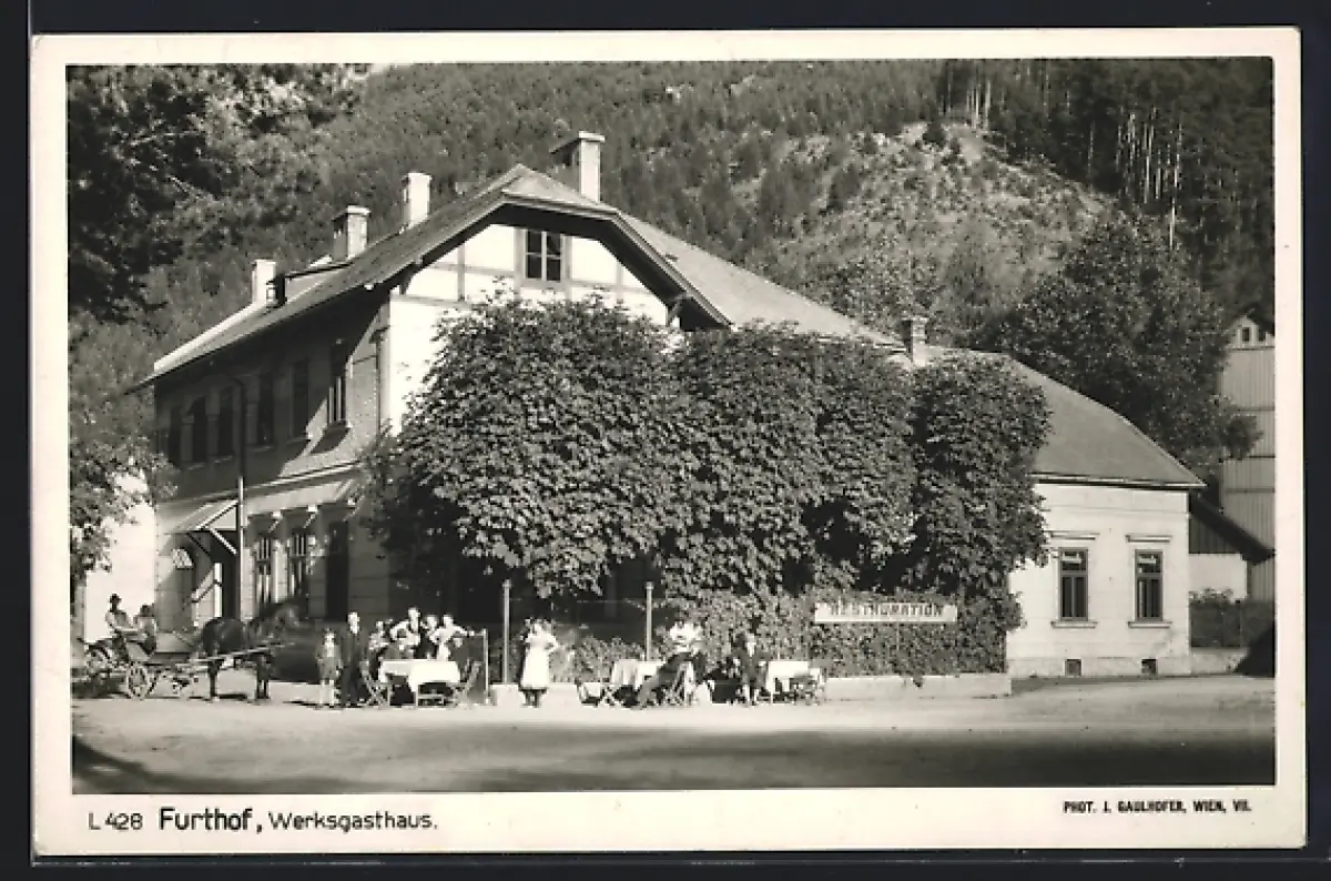 AK Hohenberg /N.-Oe., Furthof, Blick auf das Werksgasthaus mit Besuchern