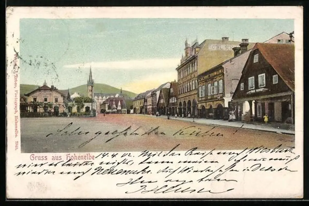 AK Hohenelbe / Vrchlabi, Ortspartie, Hotel, Geschäft