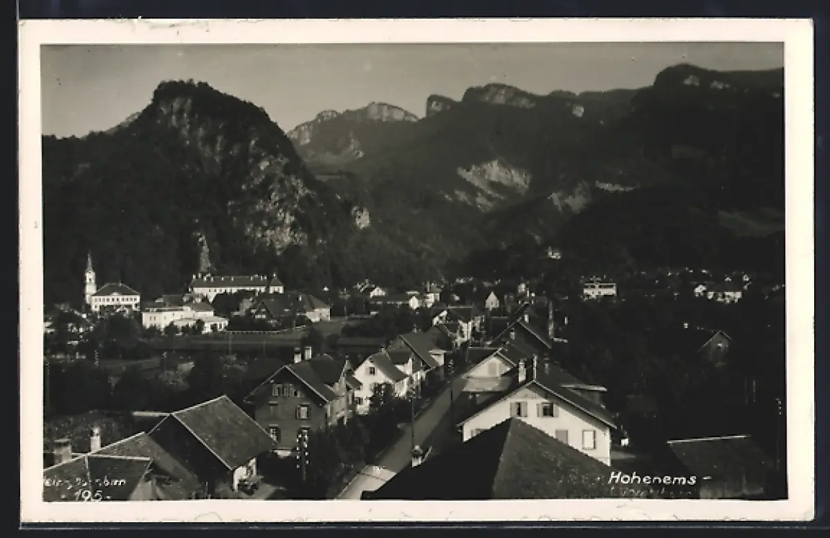 AK Hohenems, Gesamtansicht aus der Vogelschau