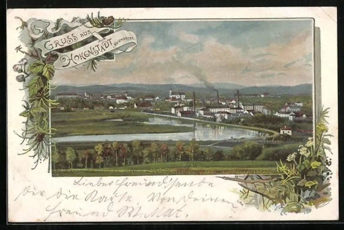 AK Hohenstadt i. Nordmähren, Ortsansicht mit Flusspartie