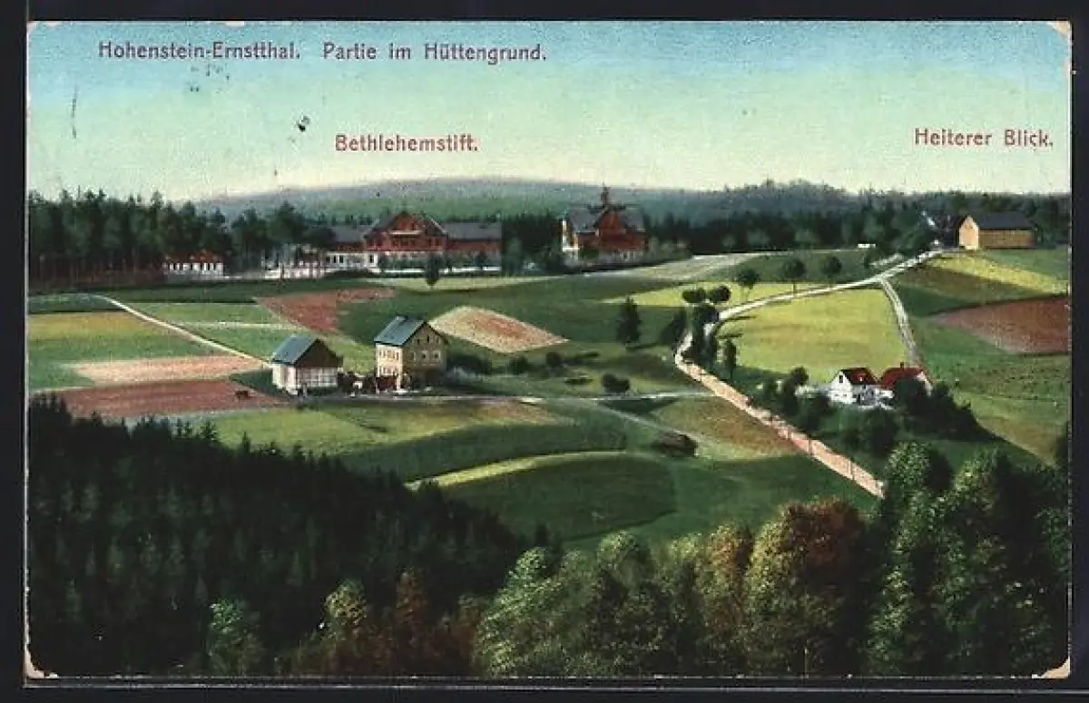 AK Hohenstein-Ernstthal, Partie im Hüttengrund, Bethlehemsstift, Heiterer Blick