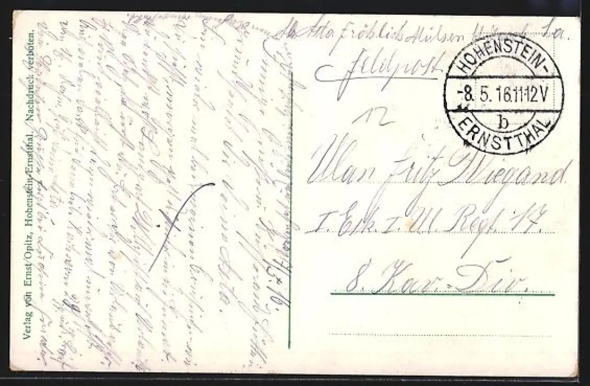 alte Ansichtskarte, gelaufen 1916, Stempelspur, guter Zustand