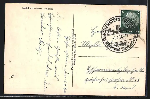 AK Hohenstein, Reichsehrenmal Tannenberg
