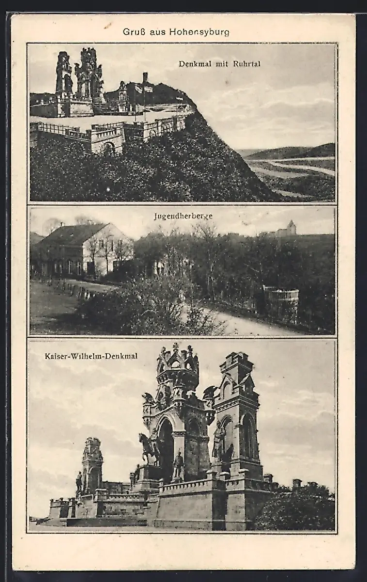AK Hohensyburg, Jugendherberge, Denkmal mit Ruhrtal, Kaiser-Wilhelm-Denkmal