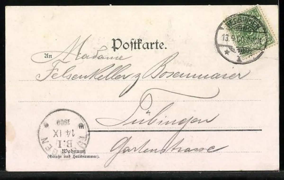 alte Ansichtskarte, gelaufen 1900, Stempelspur, guter Zustand