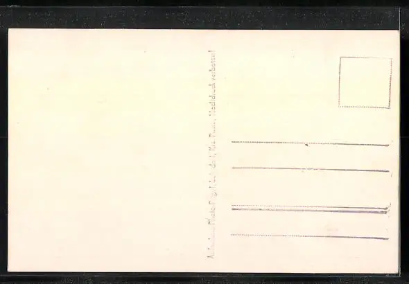 Personenbezogene Daten auf der Rückseite der Karte wurden durch blauen Textmarker unkenntlich gemacht. Die blauen Stellen sind auf die Vorderseite durchgeweicht und wirken sich negativ auf das Postkartenfoto aus