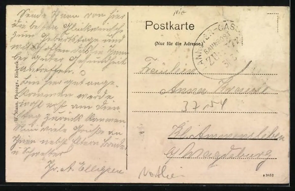 alte Ansichtskarte, gelaufen, Briefmarke entfernt, rückseitig Oberflächenschaden, guter Zustand