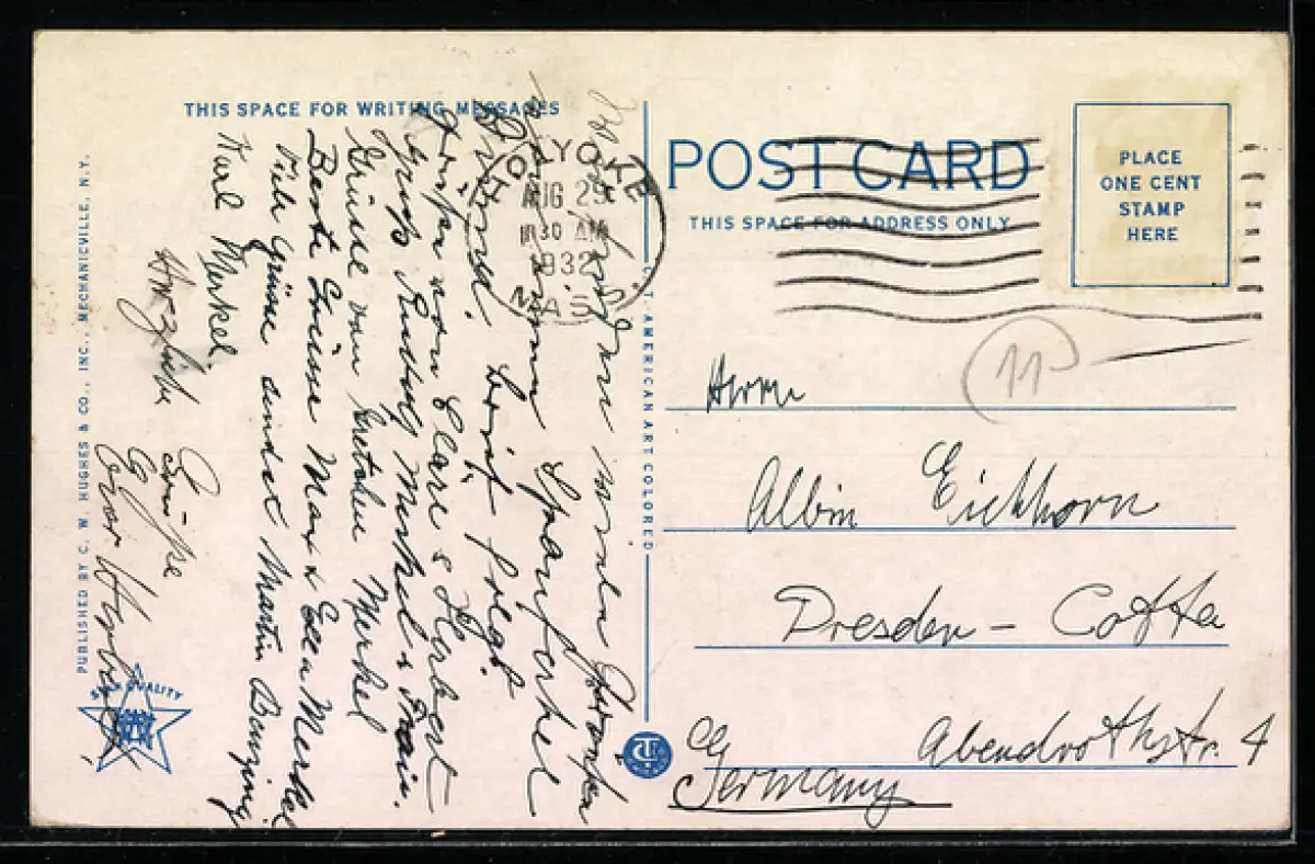 alte Ansichtskarte, gelaufen 1932, Briefmarke entfernt, Stempelspur, guter Zustand