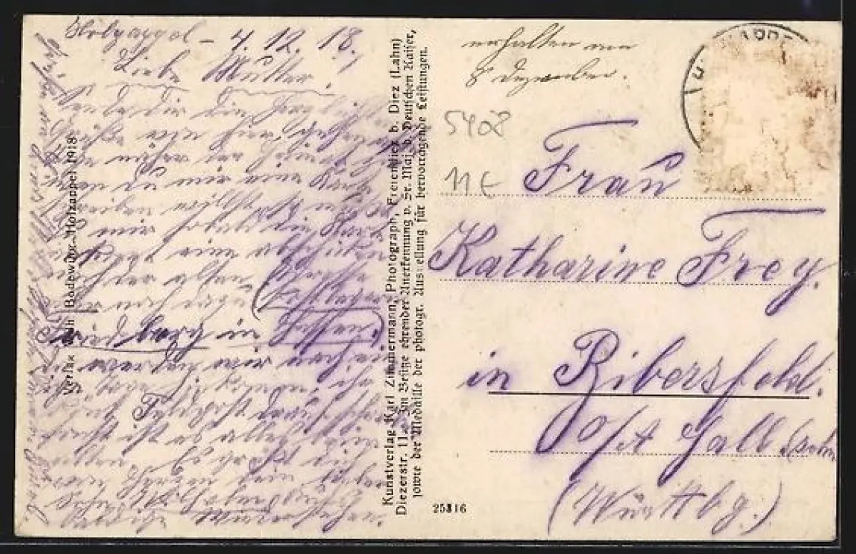 alte Ansichtskarte, gelaufen 1918, Briefmarke entfernt, guter Zustand