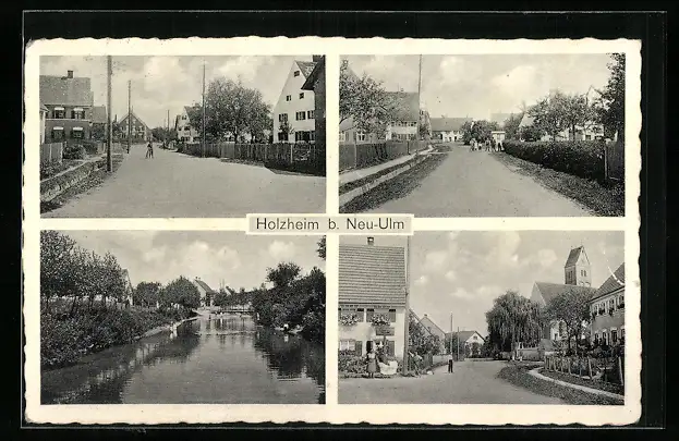 AK Holzheim b. Neu-Ulm, Uferpartie, Strassenpartie, Ortspartie