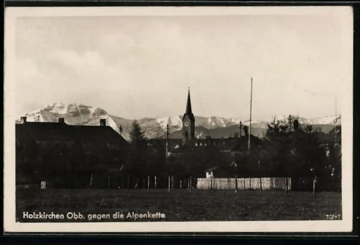 AK Holzkirchen /Obb., Blick auf Kirche und Alpenkette