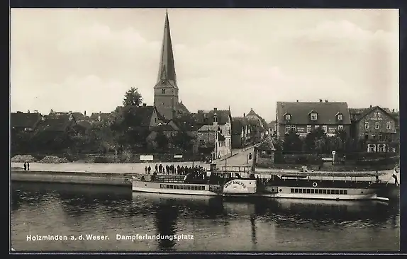 AK Holzminden a. d. Weser, Dampferlandungsplatz mit Dampfer Graf Moltke