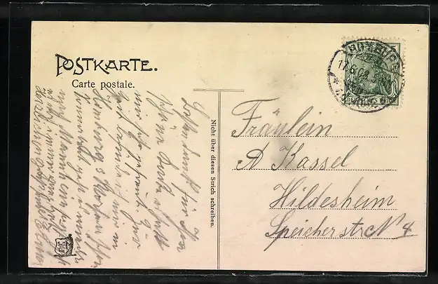 alte Ansichtskarte, gelaufen 1908, guter Zustand