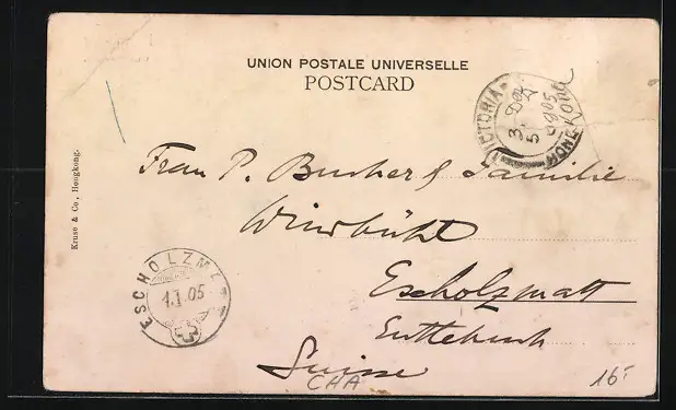 gelaufen 1905, Briefmarke entfernt, rückseitig Oberflächenschaden, Eckknick re. oben, guter Zustand