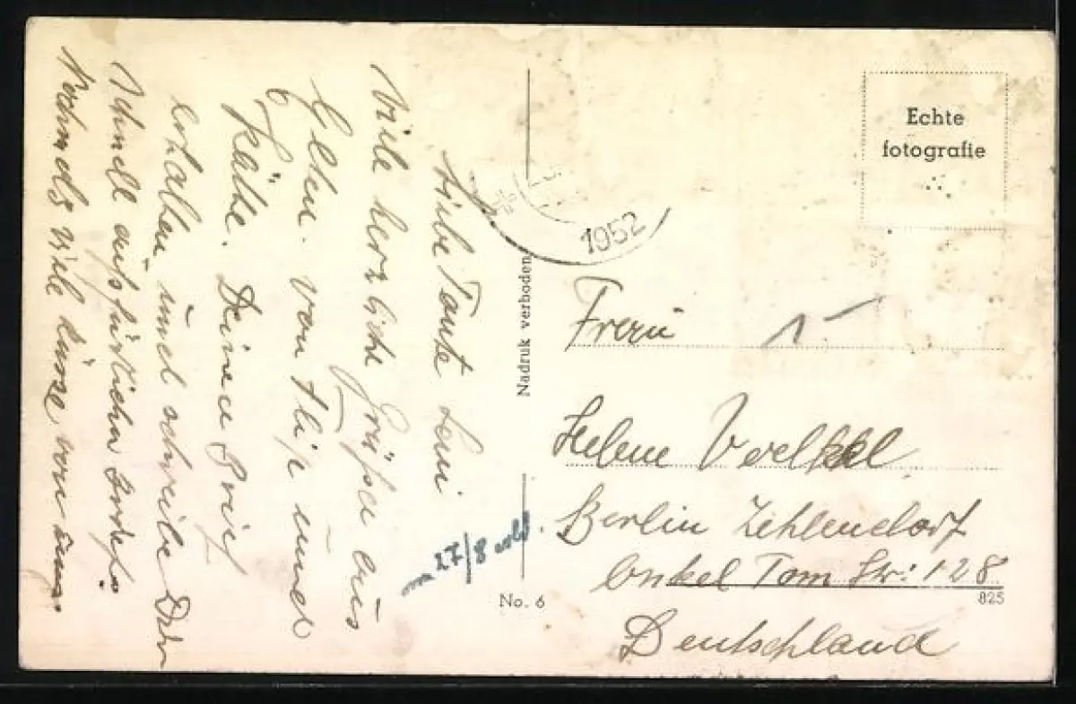 alte Ansichtskarte, gelaufen 1952, Briefmarke entfernt, Stempelspur, Eckknick links oben, guter Zustand