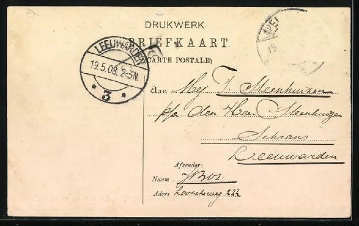 alte Ansichtskarte, gelaufen 1908, Briefmarke entfernt, guter Zustand