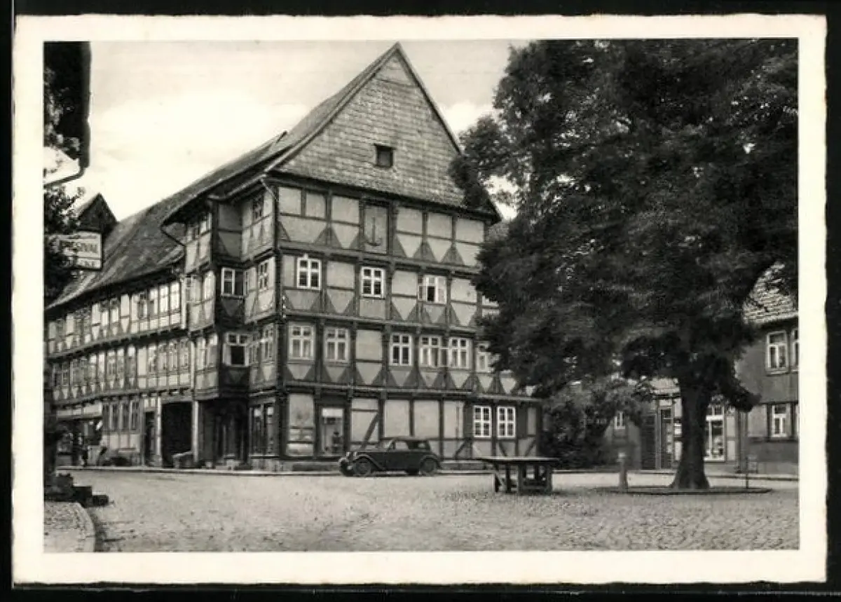 AK Hornburg /Wolfenbüttel, Marktplatz mit geparktem Auto
