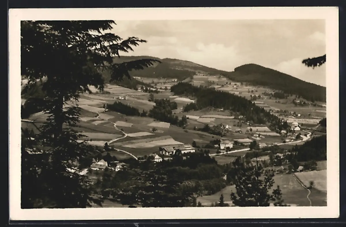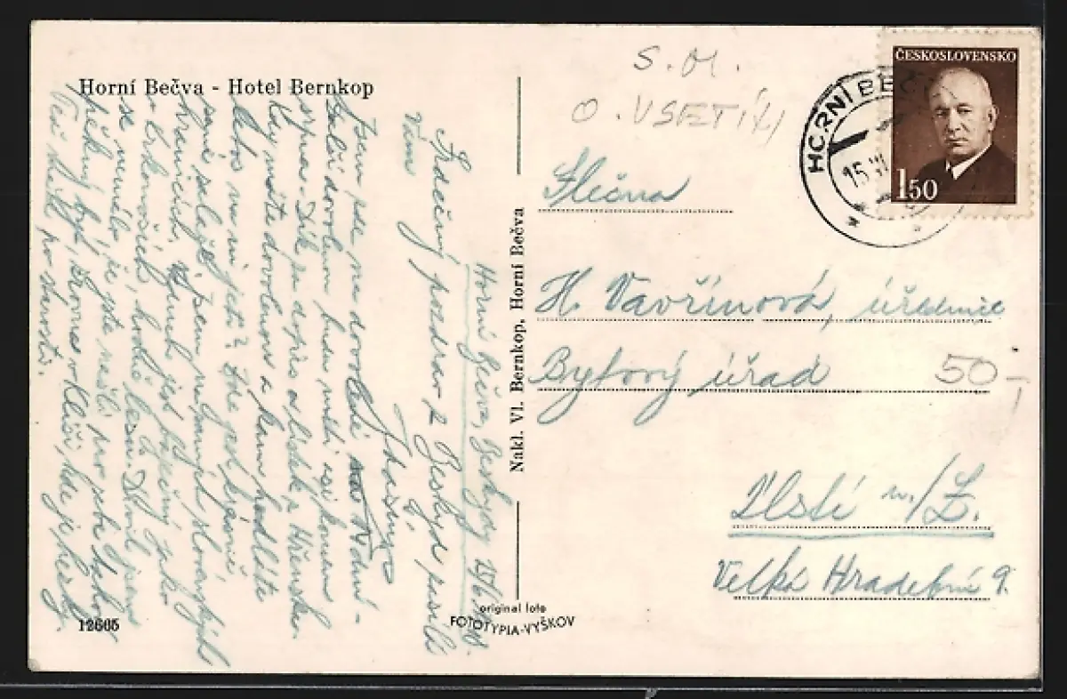 AK Horni Becva, Hotel Bernkop mit Umgebung aus der Vogelschau