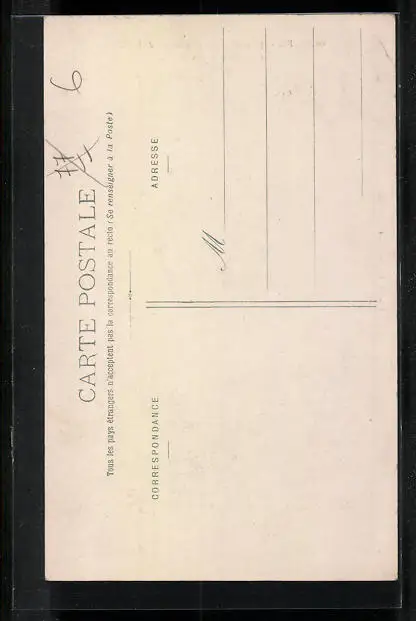 Personenbezogene Daten auf der Rückseite der Karte wurden durch blauen Textmarker unkenntlich gemacht. Die blauen Stellen sind auf die Vorderseite durchgeweicht und wirken sich negativ auf das Postkartenfoto aus