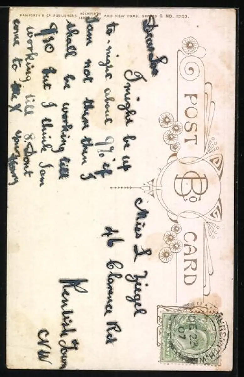 alte Ansichtskarte, gelaufen 1907, Eckknick re. oben, guter Zustand