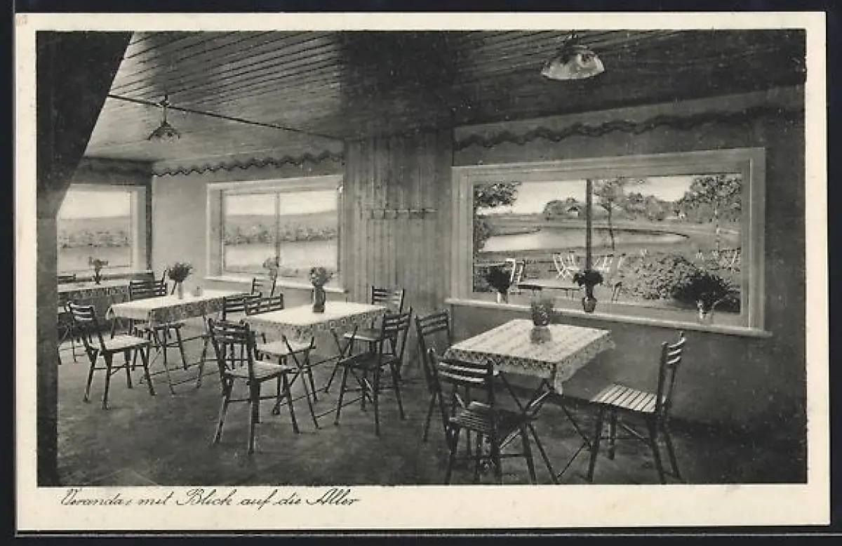 AK Hudemühlen a. Aller, Kaffeegarten und Pensionshaus Carl Schultze, Blick auf die Aller