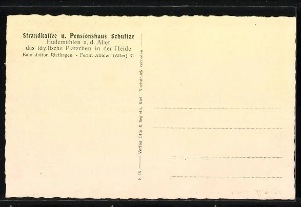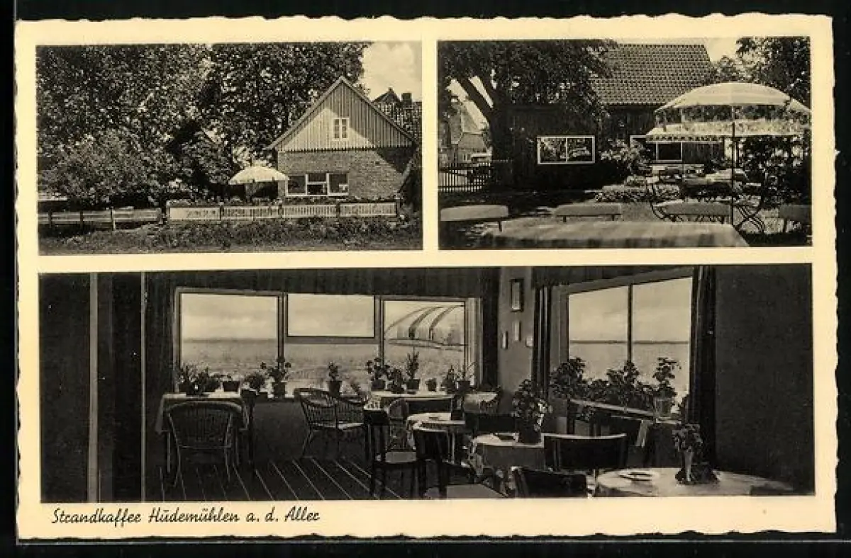 AK Hudemühlen a. d. Aller, Gasthaus Schultze, Aussen- u. Innenansicht