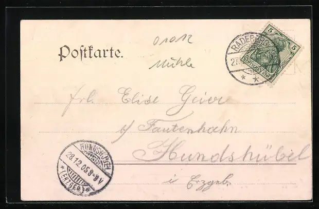 alte Ansichtskarte, gelaufen 1905, guter Zustand