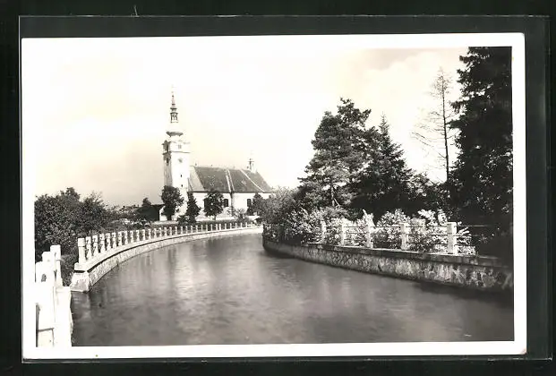 AK Hulin, Uferpartie mit Kirche