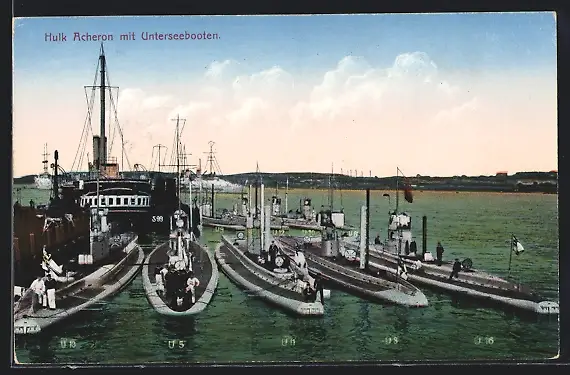 AK Hulk Acheron mit Unterseebooten U10, U5, U11, U8 und U16