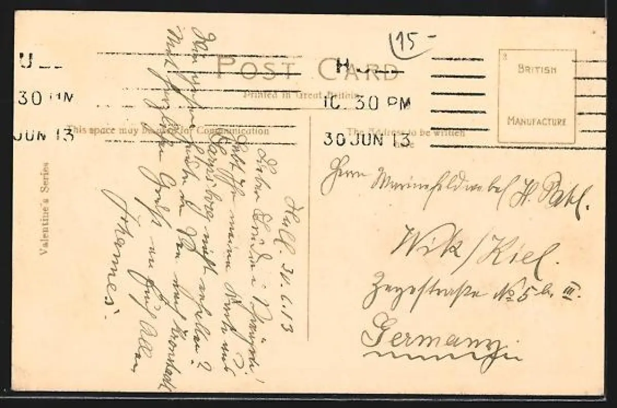 alte Ansichtskarte, gelaufen, Briefmarke entfernt, Stempelspur, guter Zustand