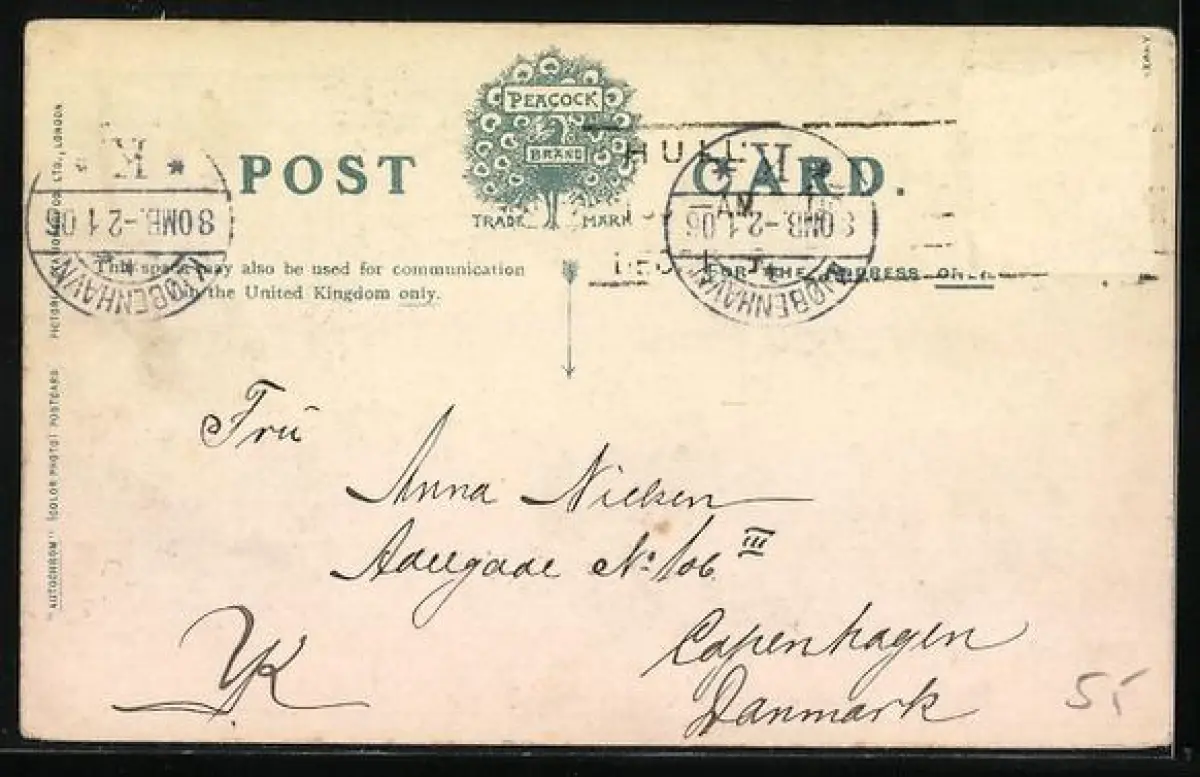 alte Ansichtskarte, gelaufen 1906, Briefmarke entfernt, rückseitig Oberflächenschaden, Bugspur li. oben, guter Zustand