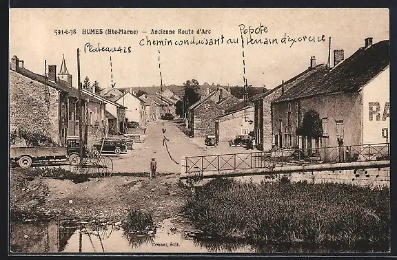 AK Humes, Ancienne Route d`Arc avec annotations manuscrites