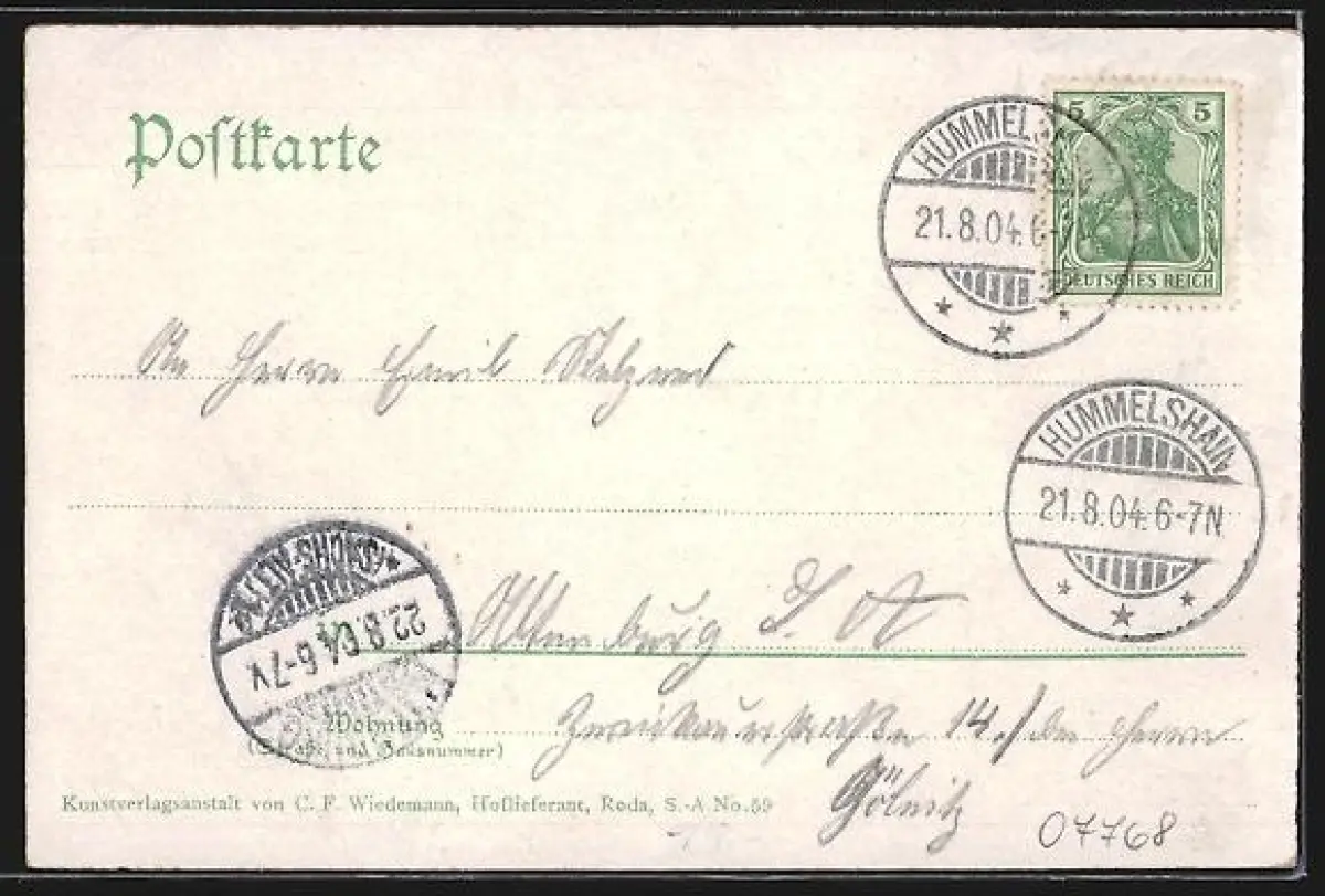 alte Ansichtskarte, gelaufen 1904, guter Zustand