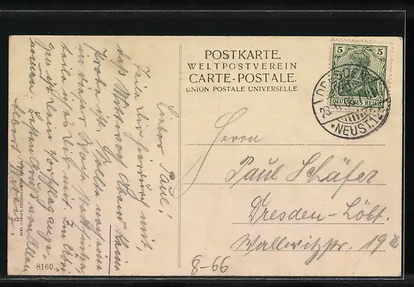 alte Ansichtskarte, gelaufen 1908, guter Zustand