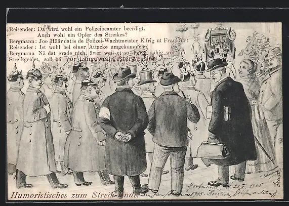 AK Humoristisches zum Streik-Ende, Beerdigungsumzug eines Polizeibeamten