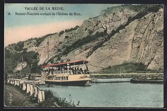 AK Hun, Namur-Touriste sortant de l`Ecluse de Hun
