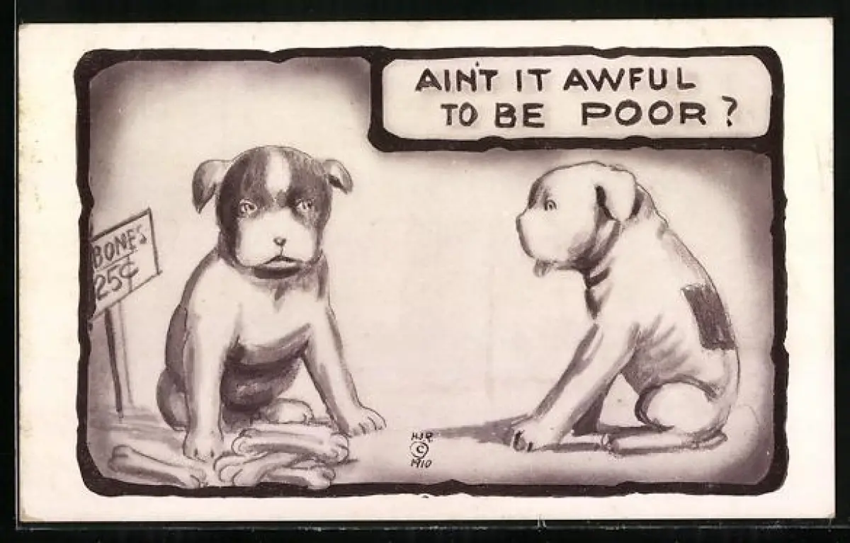 AK Hund hat kein Geld, um sich einen Knochen zu kaufen