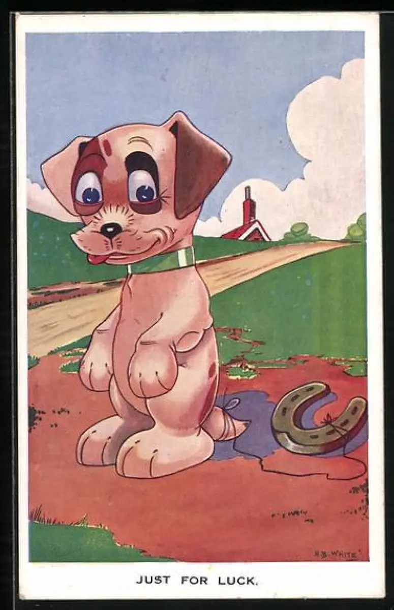 AK Hund mit an den Schwanz gebundenem Hufeisen