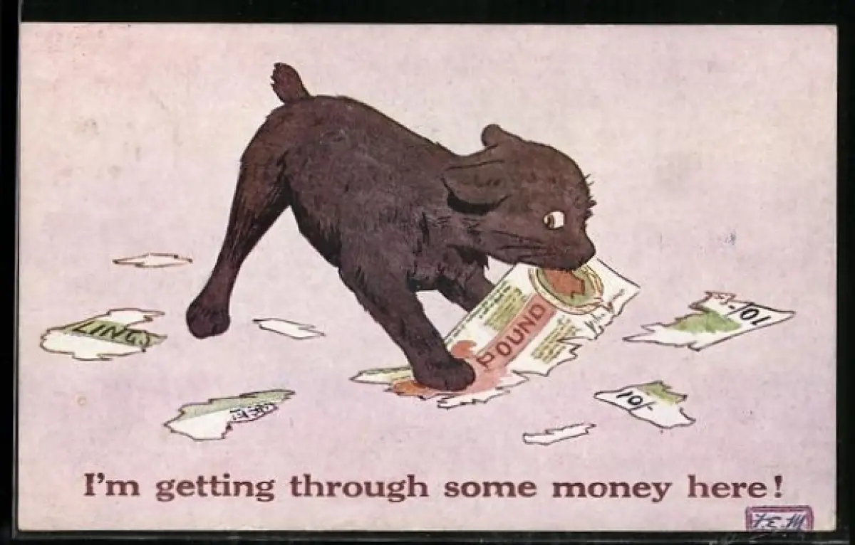 AK Hund zerbeisst einen Geldschein