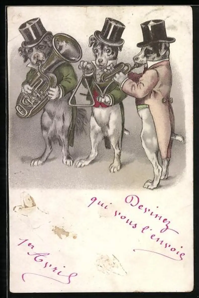 AK Hunde machen als Trio zusammen Musik, vermenschlichte Tiere