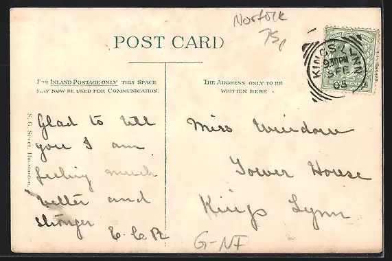 gelaufen 1905, Eckknick oben li., guter Zustand